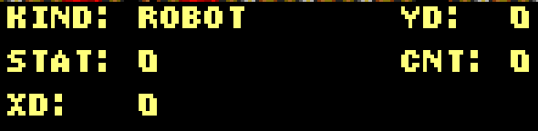 For example, press 'O' to bring up the Object menu, then 'A' to Add an object, and type "Robot" in the KIND field. You can press <ENTER> repeatedly until it is added. I'll explain the other fields in this document.